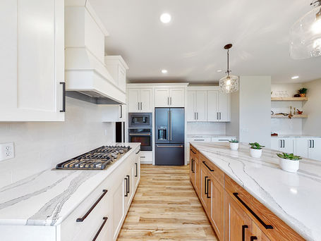 Open concept kitchen to living room. This first story also has a hearth off the kitchen with an amazing coffee bar area and walk-in pantry. Ceiling detail in living room along with vaulted office and hearth! You'll want to check this out!